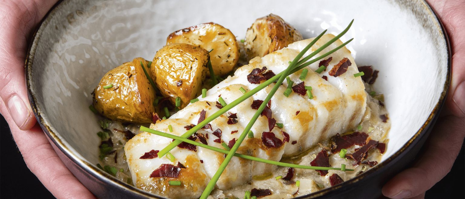 Kabeljau mit gerauchertem Wildschinken und Chicoréesoße
