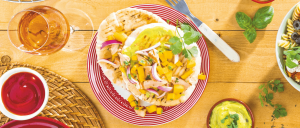 Gegrillte Lachspita mit Guacamole-Dipsoße